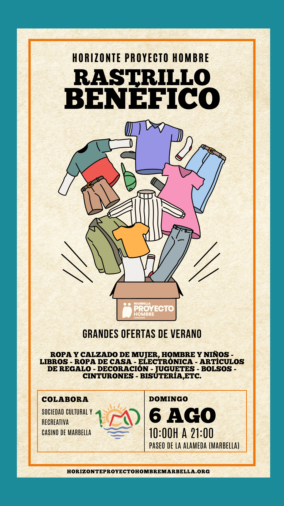 El domingo 6 de agosto, desde las 10:00h de la mañana y hasta 21:00 h, asociación Horizonte Proyecto Hombre desplegará en el Parque de la Alameda de Marbella, una veintena de puestos regentados por el veterano equipo de voluntariado de la asociación.